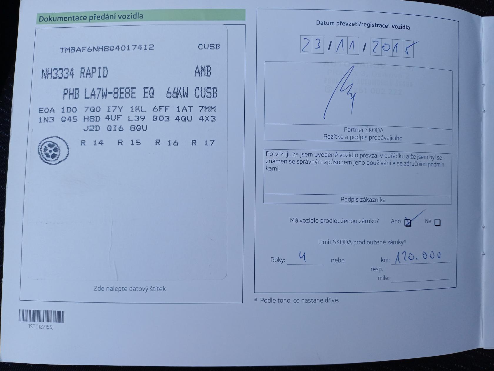 | Servisní knížka | Ano |