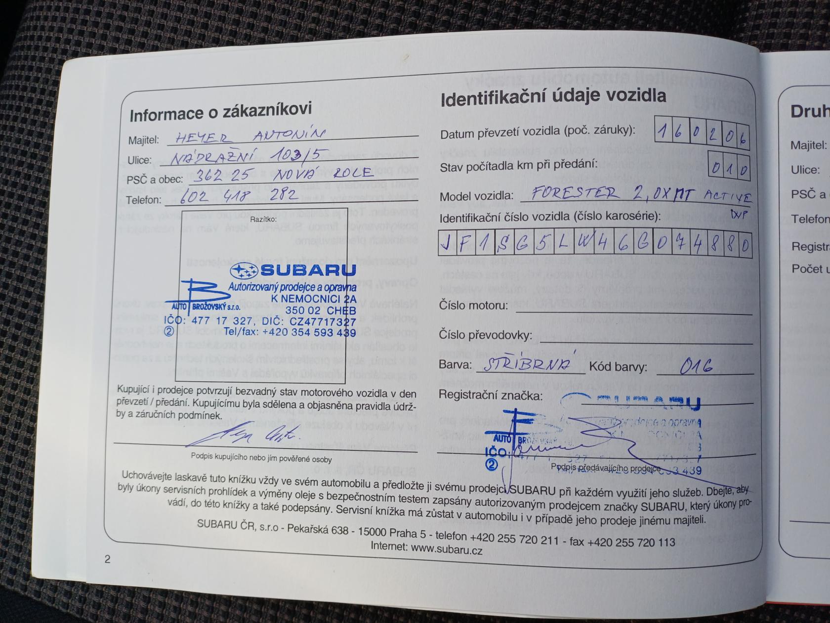 | Servisní knížka | Ano |
