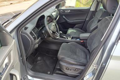 | Výbava | ABS, ESP, Hlídání mrtvého úhlu, Nouzové brždění, Protiprokluzový systém kol (ASR), Sledování jízdního pruhu, Sledování únavy řidiče, Adaptivní tempomat, Aktivní asistent řízení, Asistent pro vedení vozu v jízdních pruzích, Asistent při jízdě ze svahu, Parkovací kamera, Parkovací senzory přední, Parkovací senzory zadní, Rozpoznávání dopravních značek, Dálkové centrální zamykání, Imobilizér, Ambientní LED osvětlení interiéru, Bezklíčkové ovládání, Deaktivace airbagu spolujezdce, El. ovládaný kufr, El. ovládání oken, El. ovládání zrcátek, El. parkovací brzda, El. sklopná zrcátka, Klimatizovaná přihrádka, Kožené čalounění, Malý kožený paket, Multifunkční volant, Nezávislé topení, Otáčkoměr, Posilovač řízení, Pádla řazení na volantu, Senzor stěračů, Senzor tlaku v pneumatikách, Venkovní teploměr, Vyhřívaná zrcátka, Vyhřívaný volant, Android Auto, Bezdrátová nabíječka mobilních telefonů (Qi), Bluetooth, CD přehrávač, Digitální příjem rádia (DAB), Digitální přístrojový štít, Mobilní připojení, Originální autorádio, Palubní počítač, Premiový audiosystém, Přístrojová deska s barevným displejem, Satelitní navigace, USB, Vstup paměťové karty, El. seřiditelná sedadla, El. seřiditelné sedadlo řidiče, Isofix, Paměť nastavení sedadla řidiče, Vyhřívaná sedadla, Automatické přepínání dálkových světel, Automatické svícení, LED adaptivní světlomety, LED denní svícení, LED světlomety plnohodnotné, Mlhovky, Natáčecí světlomety, Ostřikovače světlometů, Litá kola, Otevíratelná střecha, Panoramatická střecha, Tónovaná skla, Zatmavená zadní skla, Regulace tuhosti podvozku, Start/Stop systém, Volba jízdního režimu, AUX, Digitální přístrojová deska, Elektrické tažné zařízení, Front Assist, Lane Assist, Sedadla Alcantara |