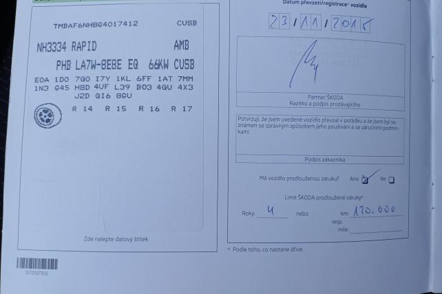 | Servisní knížka | Ano |